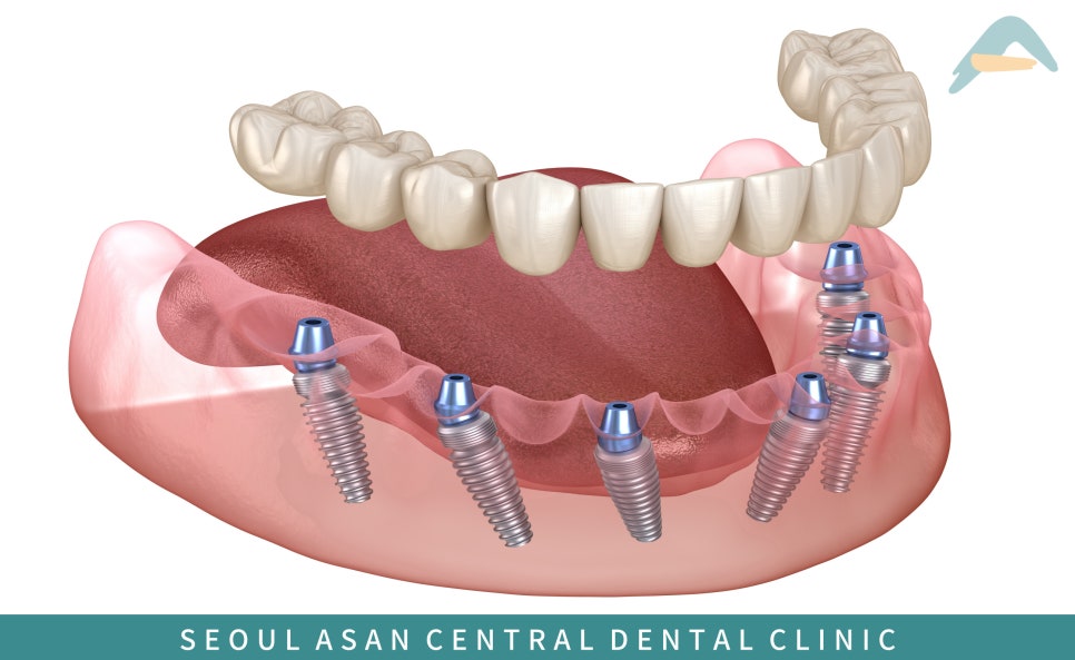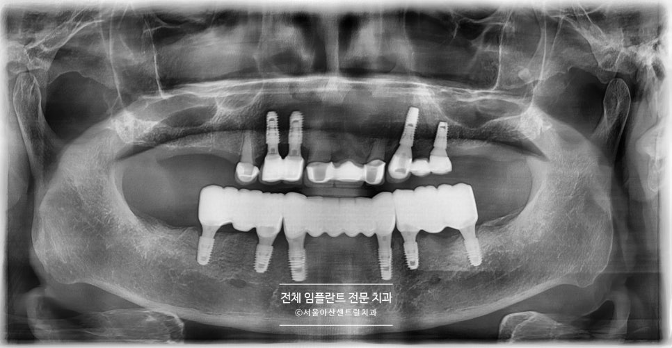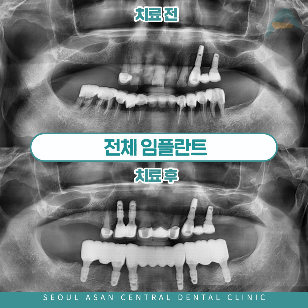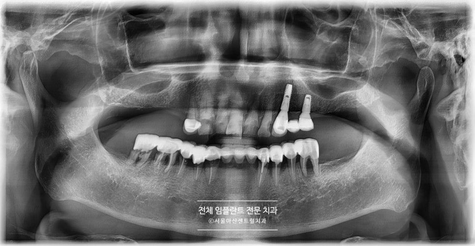 위에는 임플란트 2개, 아래는 6개치료가 가능합니다.